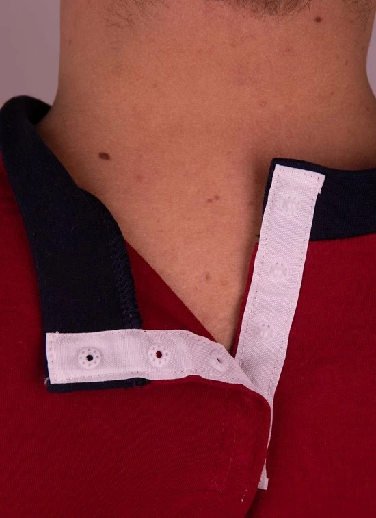 Nachthemd van jersey met driekwartmouwen. Het nachthemd kan volledige open en wordt dicht gemaakt met drukknoopjes. Kan van voren naar achteren worden aangetrokken. De voorkant heeft een klittenbandsluiting. Dit nachthemd van jersey met dubbele sluiting is speciaal ontworpen voor passieve of moeilijk aan te kleden patiΓ«nten.