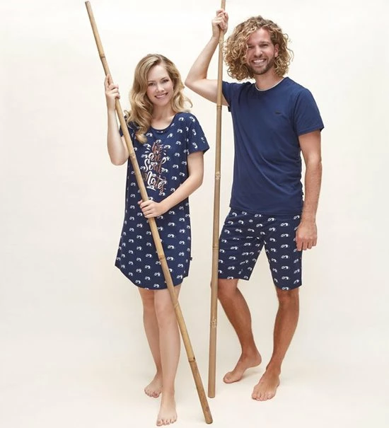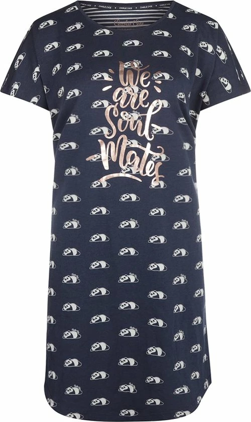 Een fijn en leuk slaapshirt met kleine Panda beren. Het slaapshirt heeft korte mouwtjes en loopt aan de onderkant rond. Op de voorkant staat in rosΓ©kleurige letters: We are soulmates.