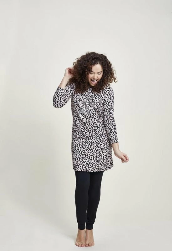 Een leuk Charlie Choe nachthemd met dierenprint. Het nachthemd komt tot op de knie en heeft een rondlopende voor-en achterkant. Een fijn nachthemd met een lange mouw, voor de koudere winternachten. * Dierenprint * Rondlopende voor-en achterkant * Lange mouwen * Lengte: op de knie * Fijne zachte katoen Samenstelling Charlie Choe Big Shirt Wild Dames: 95 % Katoen 5 % Elastan Onderhoudsinstructies: – Machinewasbaar op 40 graden – Niet bleken – Drogen in wasdroger niet aan te raden – Niet heet strijken, voorzichtig bij strijken met stoom – Stomen is toegestaan