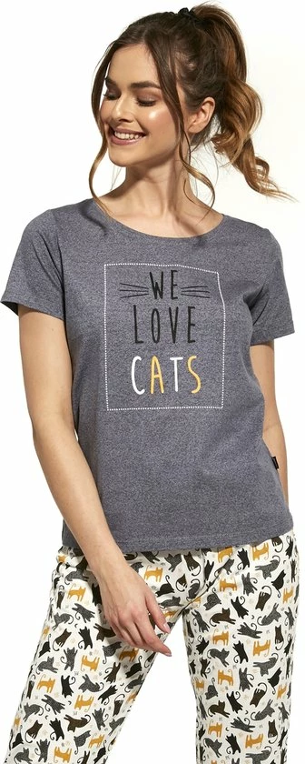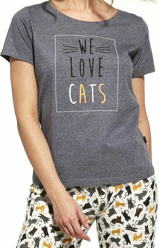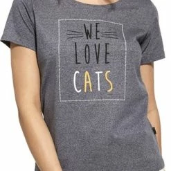 - Effen top met korte mouwen en “WE LOVE CATS” print.