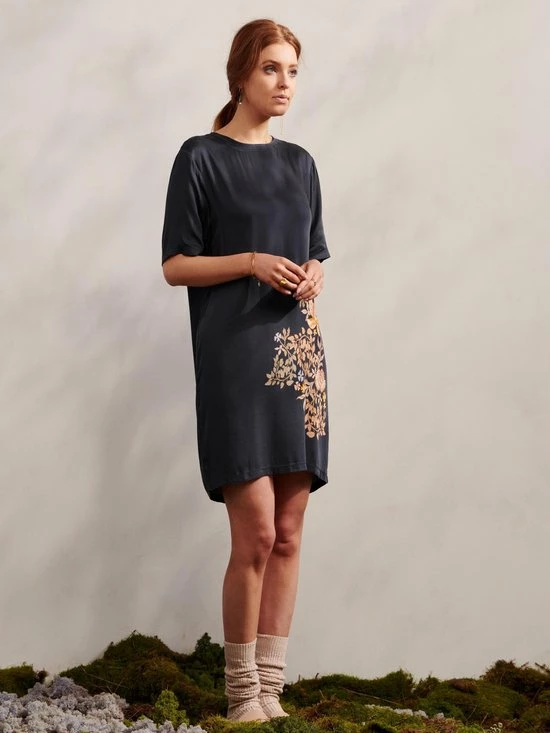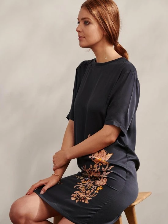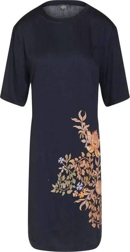 Chic-nonchalant, is deze pyjamajurk Caro in de prachtige uitvoering en met korte mouwtjes. Gemaakt van duurzaam materiaal (goed voor de aarde en daar slaap jij ook weer beter van) en met een vleugje elastaan voor de rekbaarheid. En heb je die subtiele bloemenprint aan de onderkant al gezien?