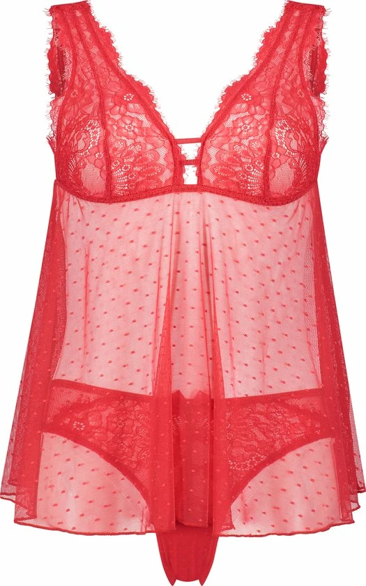 Heerlijk om te hebben! Deze babydoll bevat een leuk stippen patroon en kant. Schattig, elegant en sexy in één. Draag in combinatie met je favoriete slip.