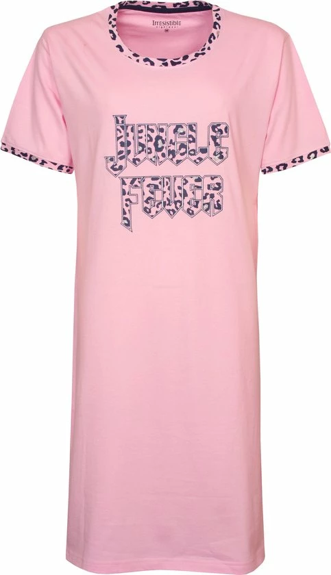 Irresistible dames nachthemd gemaakt van 100% gekamde Katoen. Dit nachthemd is gemaakt in een draagbare en rekbare jersey kwaliteit. Deze nachthemd is in een unie kleur met een mooie applicatie op de borst. Dit nachthemd met Korte mouwen heeft een Ronde hals met een rekbaar boordje. De korte mouwen en Ronde hals hebben een leuk printje die mooi overkomt met de applicatie op de borst. Alle boorden met elasthan voor meer draagcomfort. Dit nachthemd heeft een lengte van 95 cm.