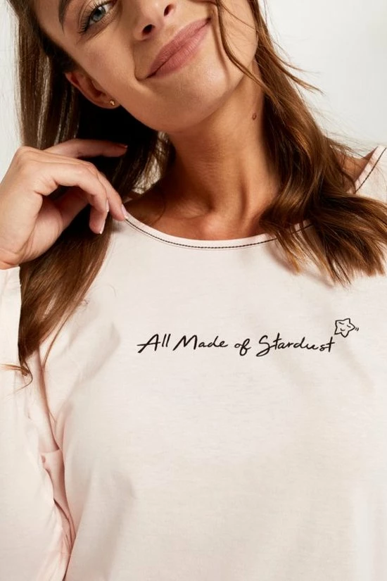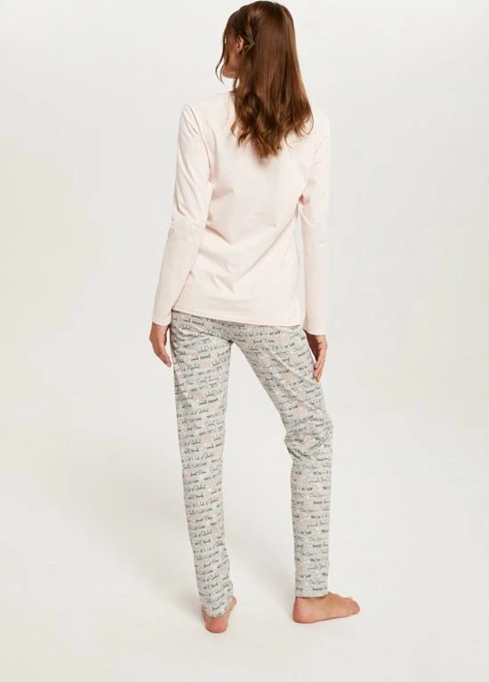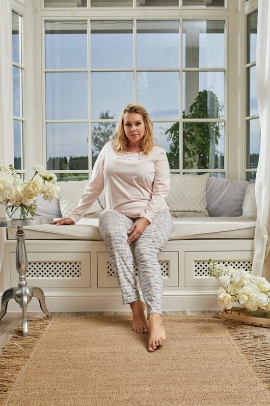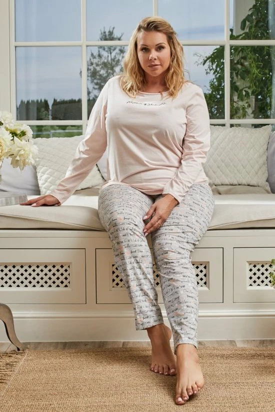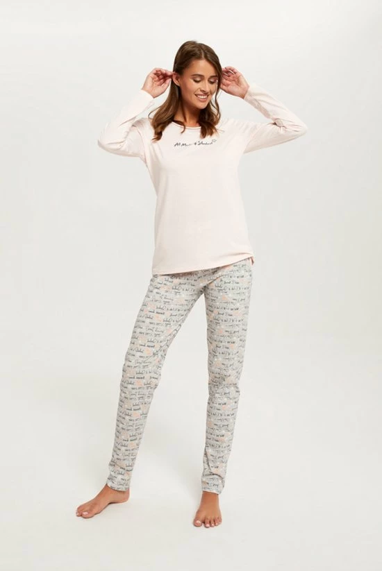 Het is een perfecte combinatie van lichte, subtiele zalmgrijze kleuren met een interessant en origineel patroon. Het universele design en de eenvoud maken het product tijdloos. Dankzij interessante graphics wordt pyjama modern en volgt zo de huidige trends.