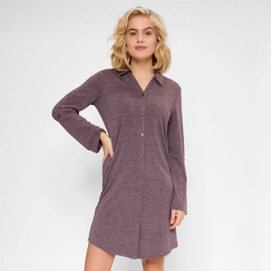 Een superzachte jersey pyjama jurk in de warme kleur Winetasting Marl. De klassieke stijl maakt deze jurk zeer stijlvol door zijn eenvoud.