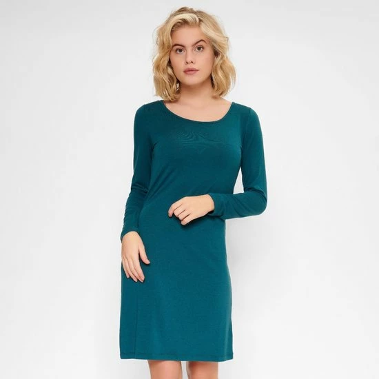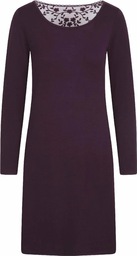 Deze comfortabele effen pyjama jurk is voorzien van een elegant embroiderie motief aan de achterkant.