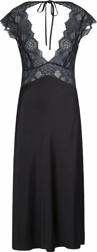 Black Peacock⦠Deze sexy maar toch stijlvolle zwarte lingerieserie is door haar kanten details een echte musthave voor jouw lingeriecollectie! De long dress is gemaakt van een satijnlook stof samen met kant en daardoor gedeeltelijk semi-transparant. De mooie diepe v-hals en open achterzijde zorgen voor een sexy uitstraling. De achterkant is vast te knopen doormiddel van een veterdetail.