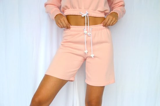- roze biker short / korte broek dames + dames hoodie roze kort