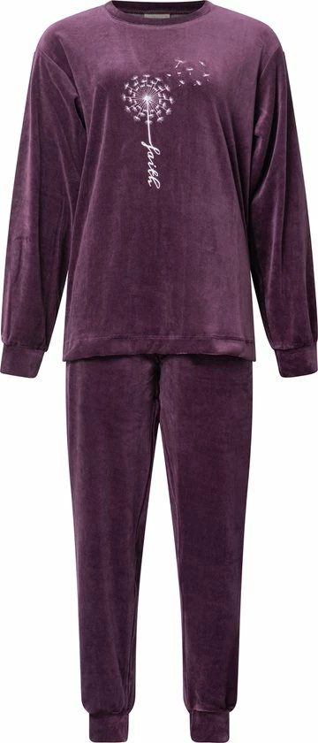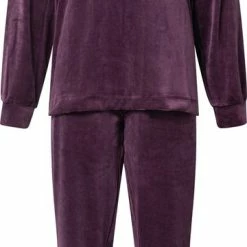 Zeer mooie velours dames pyjama van het goede merk Lunatex. Het jasje heeft een neutrale maar speelse print voorop en is netjes afgewerkt met een ronde hals en elastische boorden aan de mouwen. De broek heeft tevens elastische boorden.