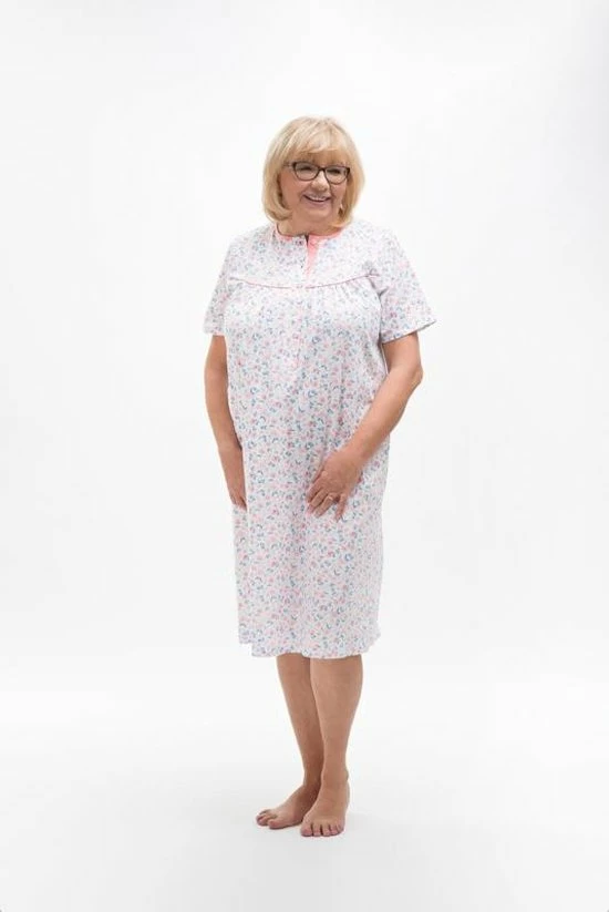 Klasieke dames nachthemd met modieuze print. Dit nachthemd met korte mouwen is versierd met een bloemen motief.