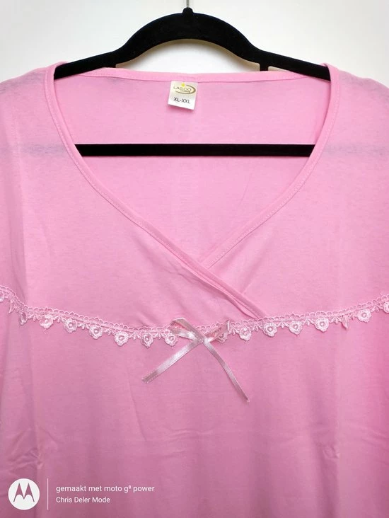 Nachthemd voor dames Nova in de kleur roze. Het nachthemd zit comfortabel en is prettig om de dragen voor een goede nachtrust. Het nachthemd is mouwloos. Aan de voorzijde is een kantenrand gestikt over de breedte met een klein strikje. Het nachthemd is gemaakt van 100% katoen. Lengte 110 cm/Breedte 71 cm. Maat XL/XXL.