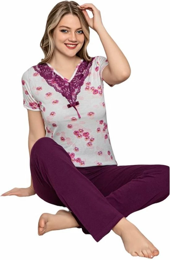 Deze pyjama set / huispak heeft korte mouwen T-shirt met print en een mooie lange broek.