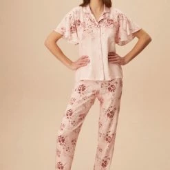 Prachtige viscose pyjama set met een kraag, een knoopsluiting voor, korte mouwen