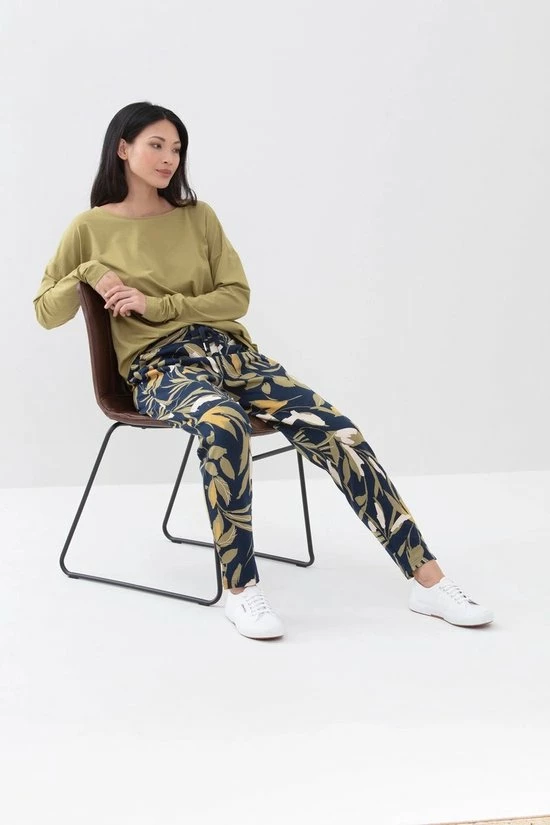 Een sportieve broek in joggingbroek stijl om te dragen als pyjamabroek of als homewear. In de tailleboord zit een trekkoord waarmee u de broek op maat maakt. De fijne katoenkwaliteit voelt prettig aan op de huid. Een perfecte broek om lekker in te relaxen en te slapen.