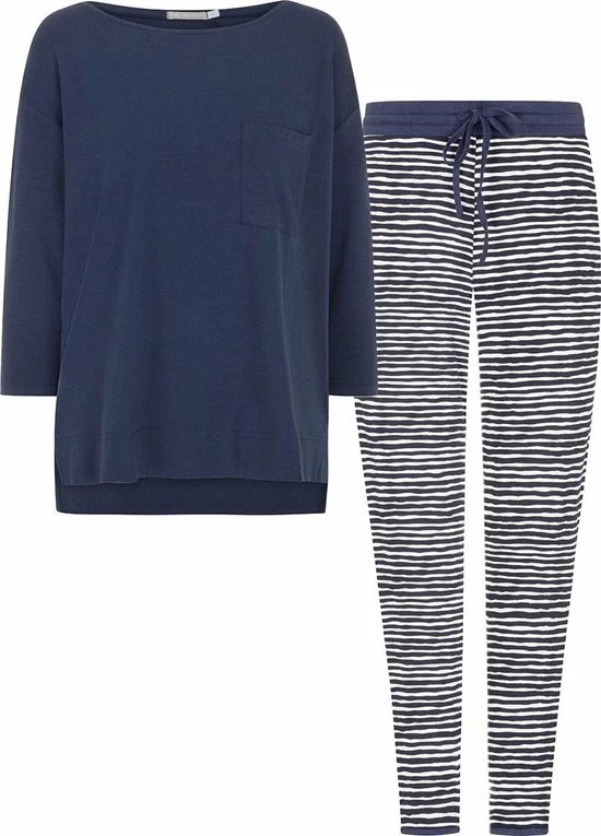 Deze pyjama uit de Night2Day-serie bestaat uit een broek van 7/8 lengte en een los hemdje met 3/4 mouwen en borstzakje. Een praktisch detail is de strikband in de tailleband en de praktische zakken. Het modieuze ontwerp en het zachte materiaal maken de knusse look compleet en zorgen voor een comfortabel gevoel.