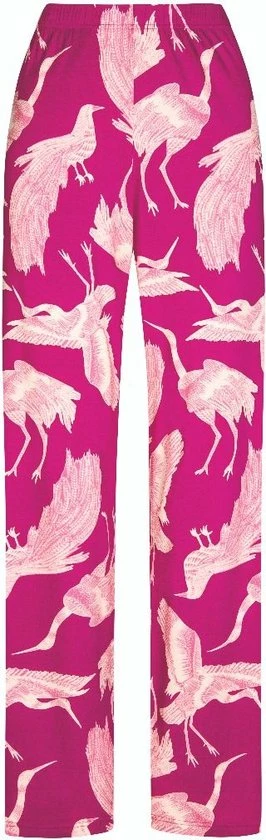 Een prachtig wijd toelopende pyjamabroek of loungebroek in een bijzondere print met Kraanvogels. De pyjamabroek is gemaakt van Modal dat heel zacht en glad aanvoelt op de huid. Samen met het bijpassende pyjamajasje (16300) is het een bijzondere mooie combinatie. Ook is de broek leuk te combineren met het Alena shirt in dezelfde kleurstelling (16228)