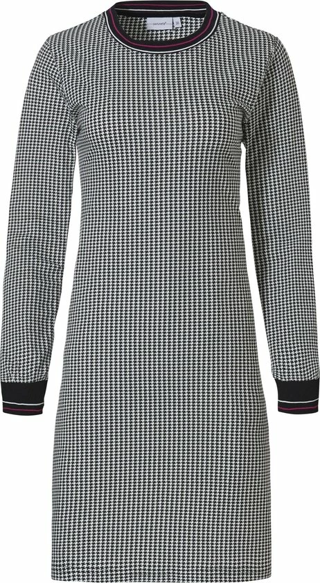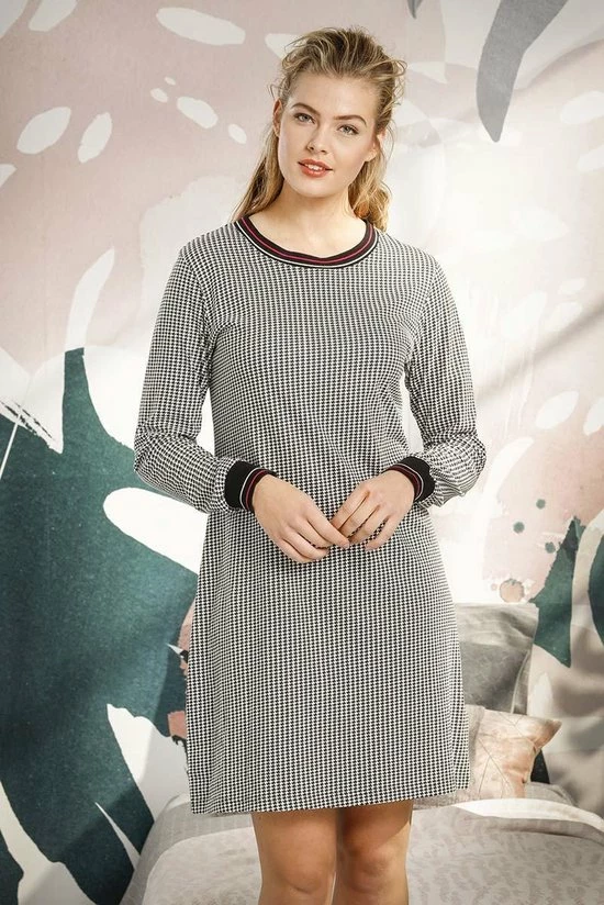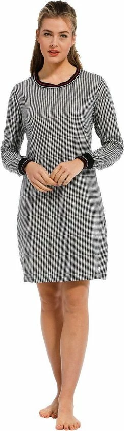 Dit nachthemd van Pastunette is gemaakt van 100% katoen wat zorgt voor optimaal comfort. Het heeft een print van Pied de Poule en is afgewerkt met zwarte boordjes. Een heerlijk nachthemd!