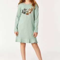 Uitgang โ๏ธ Woody Slaapkleed Meisjes/dames – Grijsblauw – Uil – 222-1-BDR-S/806 – Maat XXL ๐