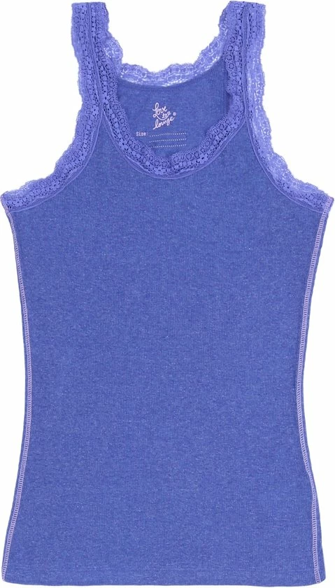 T-shirt in lila kleur, kant rond de halslijn en schouders.