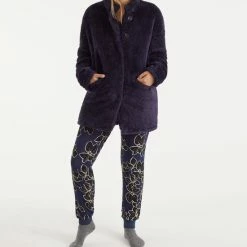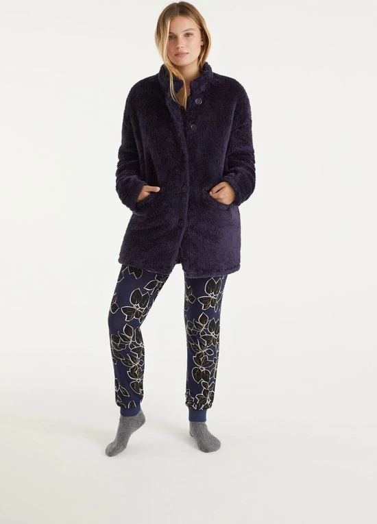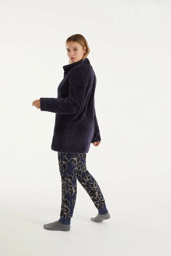 Pyjama Set Goodness XL van het merk Promise – De Pyjama Set Goodness van Promise is een 3-delige pyjama set. De Pyjama Set Goodness bestaat uit een top met lange mouwen, een lange broek en een fleece jasje. De broek en het jasje hebben de kleur donker blauw , de top is donker blauw en heeft een v hals afgewerkt met kant. Het jasje heeft zakken, een opstaande kraag en een knoopsluiting . De broek heeft aan de bovenkant en aan de onderkant van de pijpen een elastische band. De broek heeft steekzakken. Materiaal: Top en Broek 95% Viscose, 5% Elastaan. Jasje 100% Polyester. Bekijk hier alle Pyjama Sets van Promise. Bekijk hier alle itemβs uit de Goodness collectie van Promise.