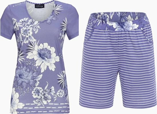 Dit trendy T-shirt met korte broek panneaux print gemaakt van bloemen is een echte eyecatcher. Modieus gemaakt met een V-hals en korte mouwen. Met een broek uit onze Bloomy collectie heb je een chique combinatie. In het model gemaakt van hoogwaardig katoen en modal voel je je gewoon goed. Het materiaal maakt ook indruk met zijn schitterende kleuren.