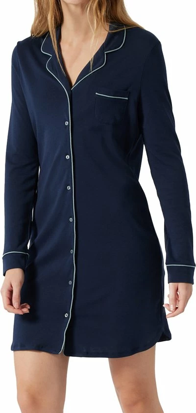 Klassiek en heerlijk aaibaar: dit damesslaapshirt met lange mouwen heeft dat beetje extra! Met zijn fijne biezen straalt hij elegantie uit. De reverskraag, de doorlopende knoopsluiting en de afgeronde zoom beloven comfort. Andere modieuze details zijn het borstzakje en de brede manchetten. U zult dol zijn op het materiaal: zachte interlock van katoen en ademende, natuurlijke modal voelt gewoon goed aan!