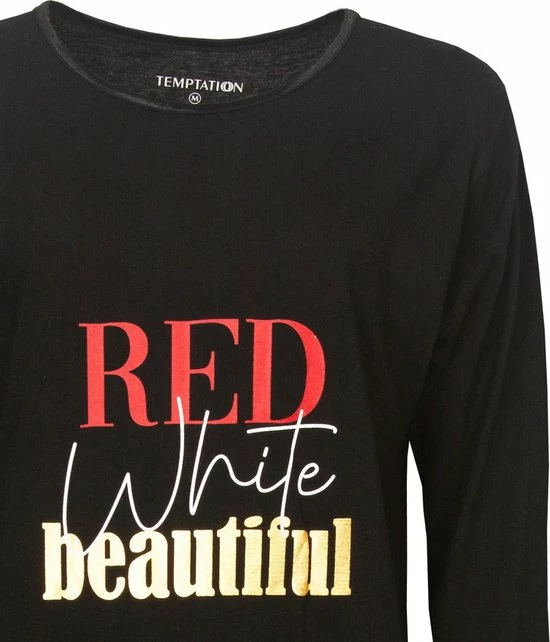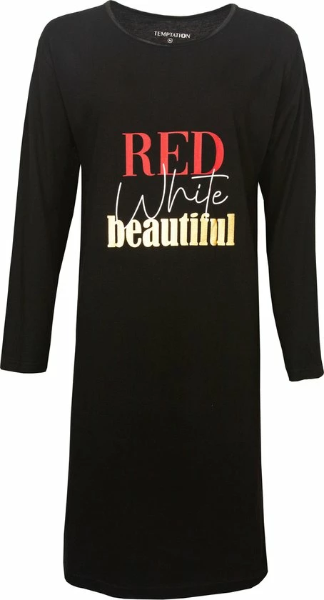 Temptation Dames Nachthemd/Bigshirt gemaakt van 100% gekamde Katoen. Dit Nachthemd is gemaakt in een draagbare en rekbare jersey kwaliteit. Dit unie Bigshirt/Nachthemd met lange mouwen heeft een Ronde hals afgewerkt met een satijnen bies en op de borst een mooie tekst print. Het Nachthemd heeft een lengte van 95 cm.