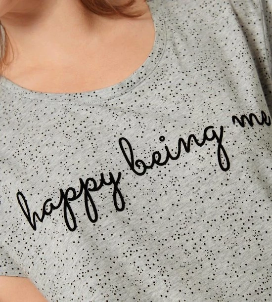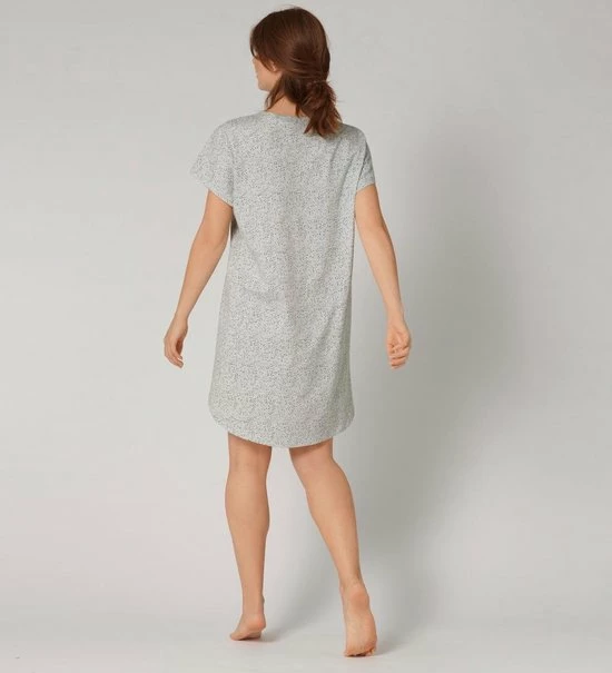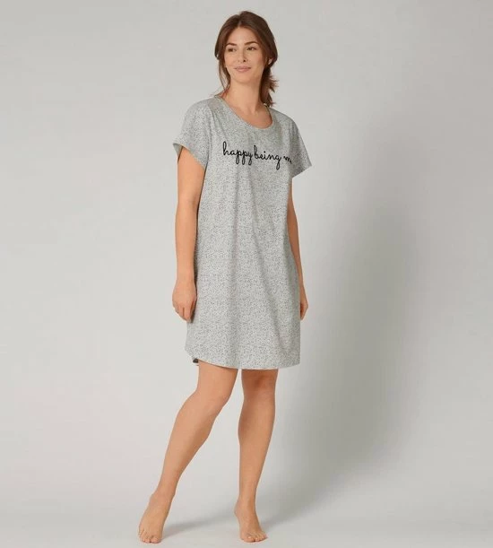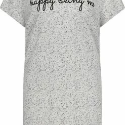 Niets is belangrijker dan blij zijn met jezelf en dit nachthemd van Triumph helpt daar een klein beetje bij! Het t-shirt vormige jurkje valt lekker oversized en heeft korte mouwen en een ronde hals. Het lichtgrijze nachthemd is voorzien van een leuke stippenprint en een tekstopdruk op de borst. Het nachthemd is gemaakt van 100% organisch katoen, fijn voor jou én het milieu dus!